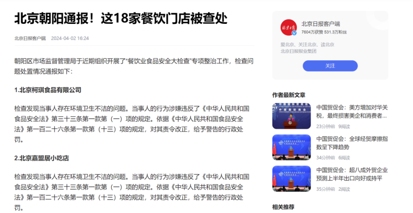 就在上個月,北京市消費者協會官方微信公眾號發布信息,公布了近日朝陽區市場監督管理局開展“餐飲業食品安全大檢查”專項整治工作的情況。北京如日火爐火餐飲有限公司合生分公司等18家餐飲門店存在餐飲具清洗消毒不合格等食品安全問題,被責令改正,并給予警告的行政處罰。